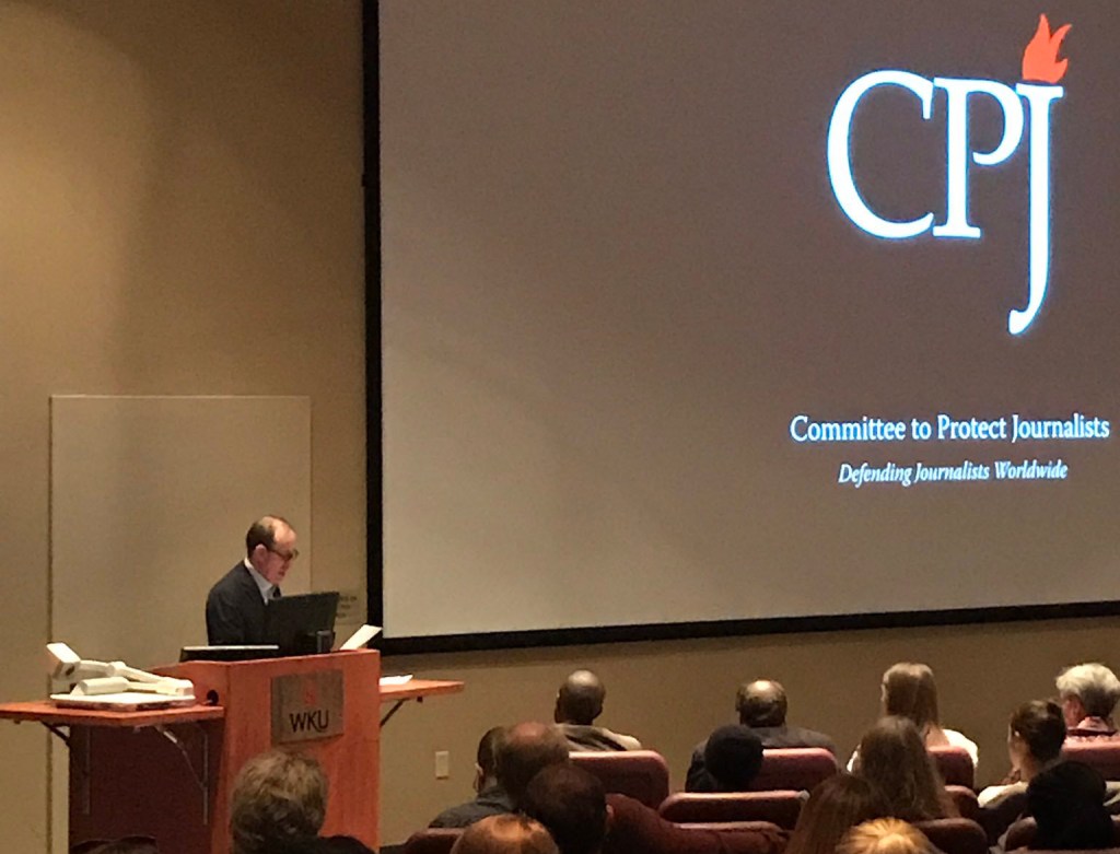 Separately, CPJ’s executive director, Joel Simon, spoke at Western Kentucky University’s School of Journalism & Broadcasting, in Bowling Green, on April 3. Simon’s speech, which was part of the 13th annual John B. Gaines Family Lecture Series, included highlights of CPJ’s work in advocating on behalf of journalists around the world and our recent efforts to uphold press freedom in the United States. “The president might call this all fake news,” Simon said in his remarks. “But I’m here to tell you–it’s the truth.”