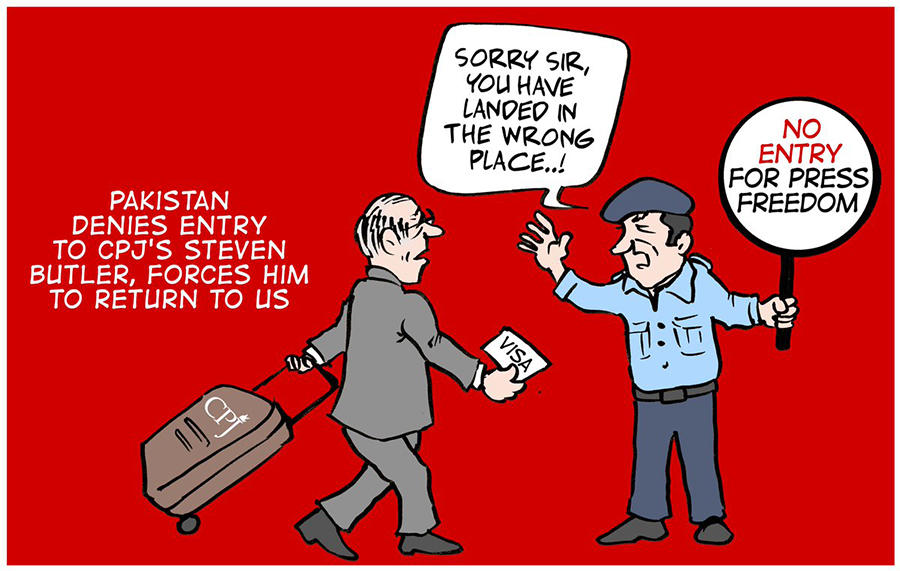 The man at the Lahore airport customs point looked puzzled. Steven Butler, CPJ’s Asia program coordinator, was holding a U.S. passport with a valid, newly issued visa to enter Pakistan. But the computer showed he was on a “stop list” from the Interior Ministry.
