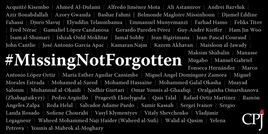 Marking the International Day of the Disappeared yesterday, CPJ launched the campaign to pressure authorities to investigate the cases of at least 64 journalists missing globally, particularly those who have disappeared in Iraq, Syria, and Lebanon during years of regional conflict – nearly one-third of the global total.