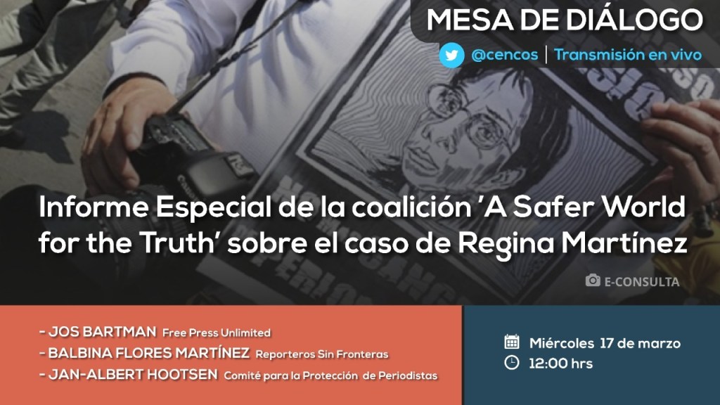 The report “The Murder of Regina Martínez Pérez: an Opportunity for Justice” was published as part of A Safer World For The Truth, an initiative by Free Press Unlimited (FPU), Reporters Without Borders (RSF) and the Committee to Protect Journalists (CPJ).