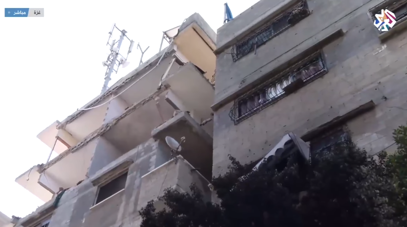 Footage by Qatari broadcaster Al-Araby TV shows that the two upper floors of Abu Hussein’s building, in Gaza City’s Sheikh Radwan neighborhood, were destroyed in the attack. The rest of the building does not appear to be significantly damaged.
