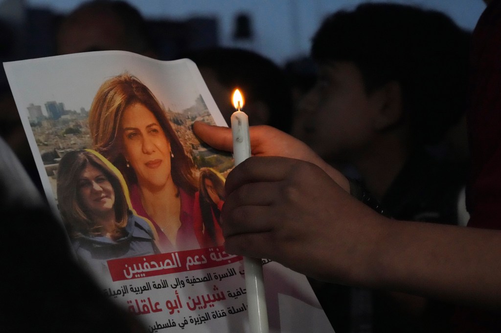 Abu Akleh, a reporter for the Qatari broadcaster Al-Jazeera, was shot and killed on Wednesday while reporting on an Israeli military operation in the West Bank town of Jenin. In a statement, her employer accused Israeli forces of killing her “in cold blood.”