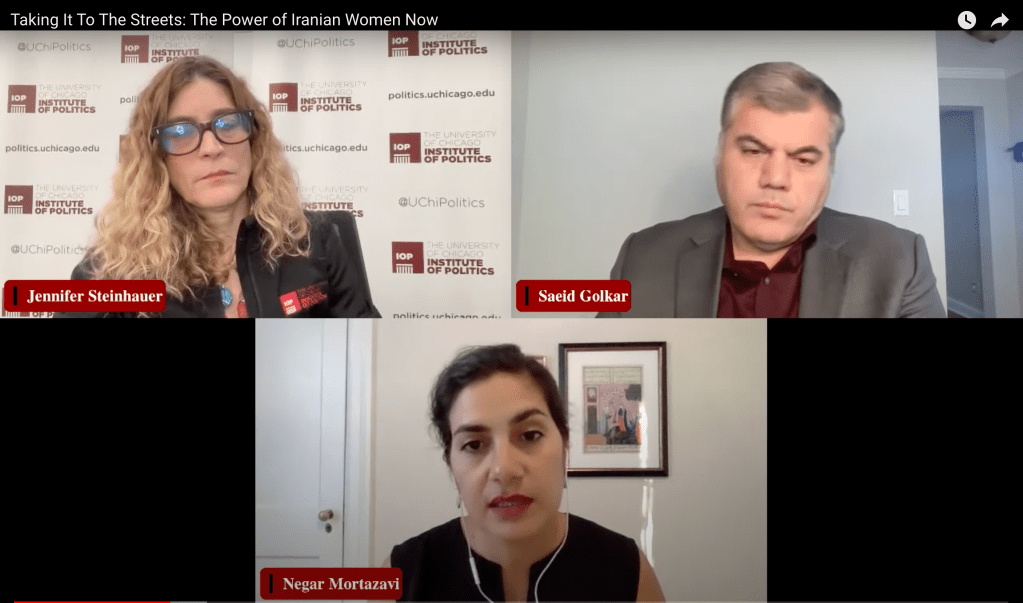 The panel discussion, titled “Taking it to the Streets: The Power of Iranian Women Now,” was scheduled for Tuesday afternoon at the University of Chicago’s Institute of Politics on the university’s campus to discuss the context of the ongoing protests in Iran, according to those reports.