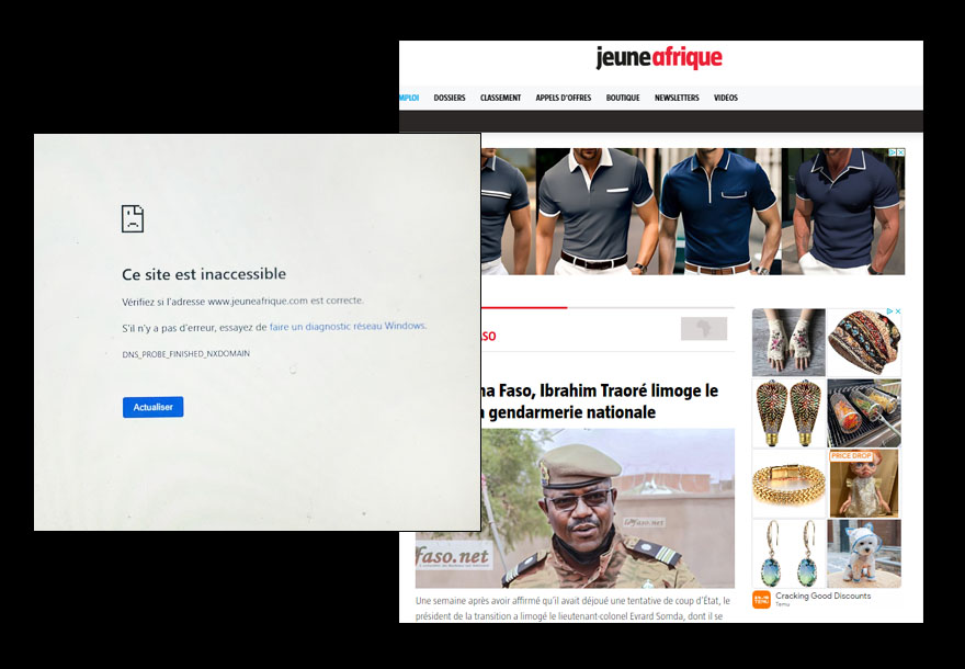 At the time of writing, Jeune Afrique’s website was unavailable in Burkina Faso, according to three journalists who spoke to CPJ on condition of anonymity, citing security fears.