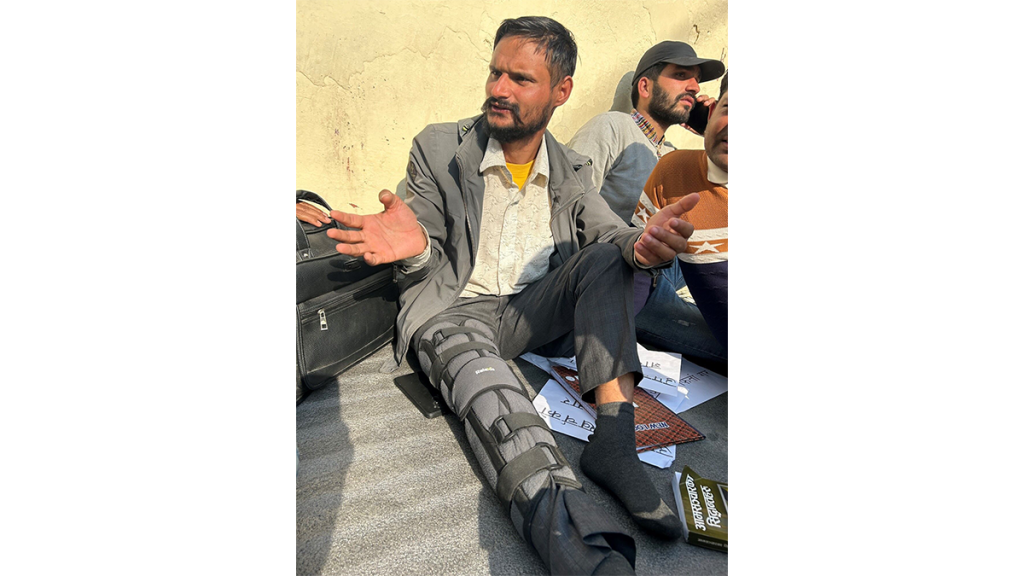 Pokhrel said officers then dragged him into a vehicle and continued to beat him for around 15 minutes until they reached a local police station, where he was left outside and later taken to the hospital by officers with the Nepal central police force. Pokhrel said he was treated at the National Trauma Center for a torn ligament in his right leg and significant bruising and muscle pain throughout his body.