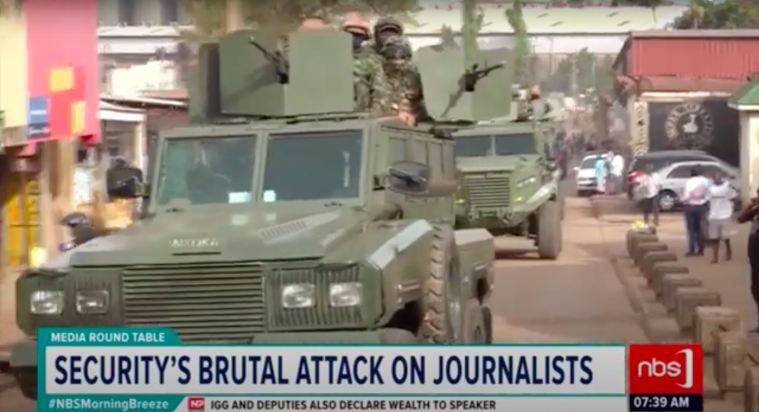 ● Soldiers detained NMG’s photojournalist Abubaker Lubowa, camera operator Denis Kabugo, and reporter Raymond Tamale, in an unmarked vehicle for four hours. Lubowa told CPJ that they were blindfolded and beaten on their heads, arms, legs, and ribs. Lubowa told CPJ that the soldiers took their phones and watches and destroyed their cameras.