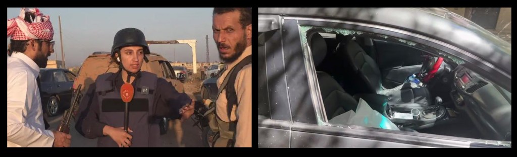 - On July 20, Rudaw TV reporter Solin Mohammed Amin was threatened and harassed during a live broadcast near Sweida by armed tribal fighters who targeted the Syrian-Kurdish journalist for speaking Kurdish. “We will come to you Kurds after the Druze and Alawites,” one man said, accusing her of being a separatist. “One of them threatened to kill me,” Solin told CPJ. “I didn’t interrupt the live broadcast so that everything would be documented.” She was eventually escorted to safety by fellow journalists and fighters. Three days later in Damascus, her car windows were smashed. Though valuables were untouched, her press ID and car documents were taken – an act she said was meant to intimidate her. She reported the incident and has since taken leave, returning to her hometown of Qamishli.