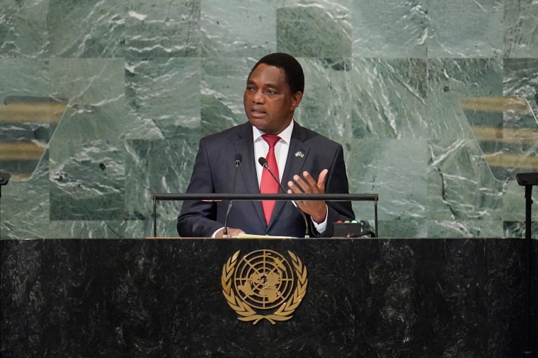Zambia President Hakainde Hichilema at United Nations General Assembly in 2022.