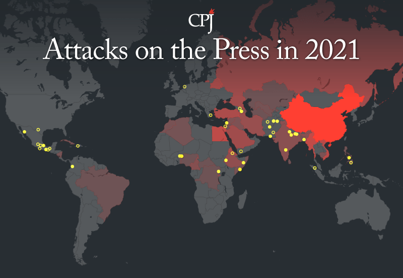 خريطة تفاعلية ومزيد من التحليلات الإقليمية لبيانات لجنة حماية الصحفيين لسنة 2021