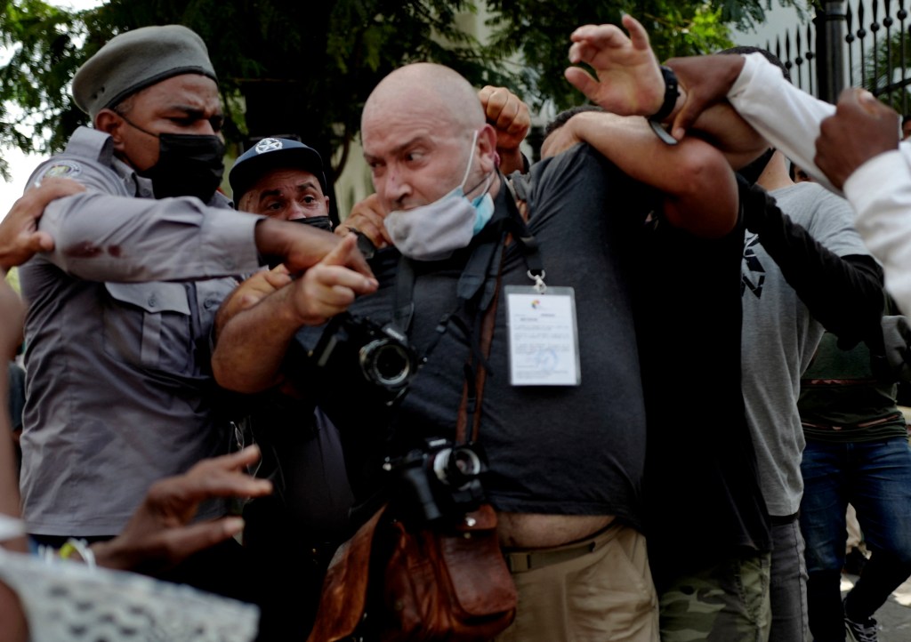 El mismo 11 de julio, agentes policiales golpearon a Ramón Espinosa, corresponsal de la Associated Press en La Habana, según versiones de prensa, que mostraron fotos del periodista cuando sangraba de la nariz y el rostro.