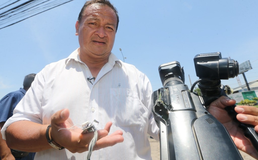 Suárez expresó que el hombre entonces le destrozó la cámara con un disparo y lo golpeó en la sien con la culata del fusil. Suárez y Gutiérrez, junto con la reportera Silvia Gómez y el camarógrafo Sergio Martínez, de Unitel TV, y el reportero Mauricio Egüez y el camarógrafo Nicolás García, de Red UNO, fueron llevados al cercano campamento del grupo armado.