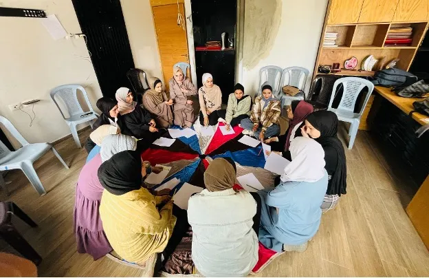 Women journalists take part in an exercise during a psychosocial support session in a joint Press House-Palestine, CPJ project.