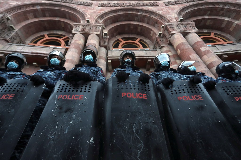 Сотрудники правоохранительных органов Армении у правительственного учреждения в Ереване (Армения), 24 декабря 2020 г. (Photolure via Reuters/Vahram Baghdasaryan)