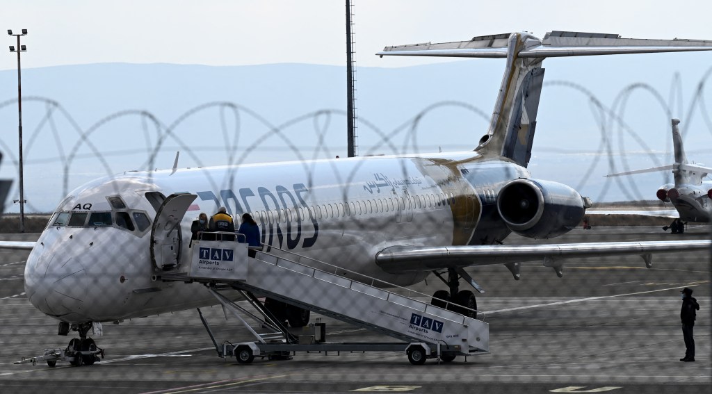 Самолет в аэропорту Тбилиси, Грузия, 7 марта 2022 года. Недавно грузинские власти отказали российским журналистам во въезде в страну. (AFP/Вано Шламов)
