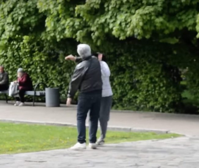 Тогда мужчина неожиданно толкнул ее сзади, начал оскорблять и кричать, требуя, чтобы она ушла. Он начал было уходить, но затем внезапно повернулся, сказал «сейчас я тебя ударю» и ударил ее по лицу, сообщила она КЗЖ.